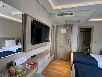 Номера, за исключением, трех-четврех очень маленькие. Кроме этого, раковина для умывания совмещена со спальным местом и в этом случае, у вас будет ощущение больничной палаты. Запах канализации в некоторых номерах- увы! Некрасивая улица и стройка на этой некрасивой улице прямо напротив отеля. Некоторая фамильярность персонала. Лукавство с номерами. Вы бронируете номер "комфорт". Вам его предлагают, но там запах канализации. Тогда вам его меняют на стандарт - очень маленький, но без посторонних запахов. Разницу в цене не возвращают и говорят, что номера стоят одинаково. Затем вы хотите продлить пребывание и вернуться в "комфорт" и в этот момент оказывается, что он, конечно, стоит дороже, чем тот стандарт, в котором вы только что провели две ночи по цене "комфорта". Как же это раздражает в отелях Стамбула. Вечное стремление обмануть клиента. Пусть на немного, но обмануть. И, пожалуйста, не заказывайте такси на ресепшен этого отеля. Они продают его за три цены от той,которая будет по счётчику. Останавливайте такси просто на улице или пользуйтесь Uber. И помните, на соседней улице есть вполне приличный Ибис. Если, что-то пойдет не так - есть варианты.