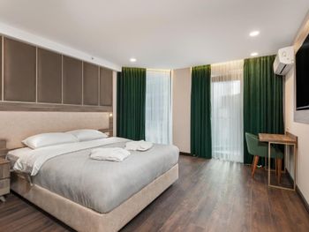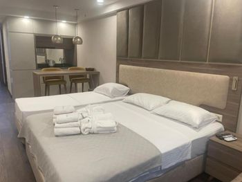 Уютные, комфортные номера. В номере есть стиральная машина,плитка,холодильник.Очень дружелюбный и отзывчивый персонал, в частности администратор Мариам. Недалеко от аэропорта, в 5 минутах пешком от моря, в пешей доступности всё необходимое.
