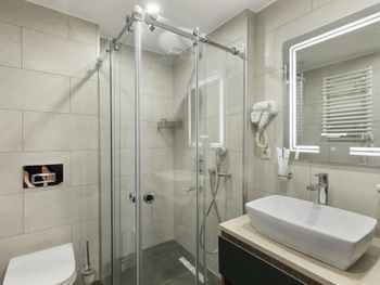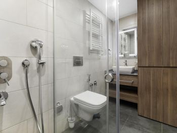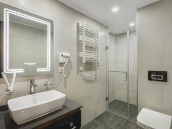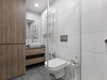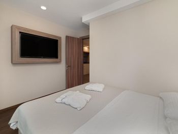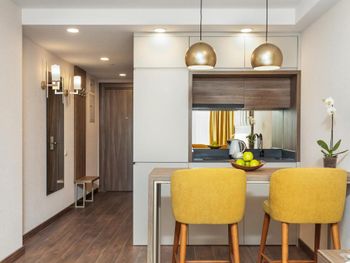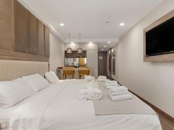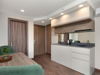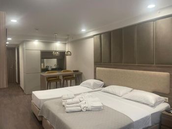 Очень просторный и комфортный номер, дают по 3 полотенца, халат и тапочки каждому гостю. В номере есть стиральная машинка и все для готовки, что очень удобно. Сам отель новый, приятный.