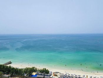 Пляж отдельный разговор, утром достаточно приемлемое море для купания, до отлива ближе к обеду. Становиться грязно - пакеты, маски одноразовые и т.д. И самый смак толпа подглядывающих в дыры забора гастарбайтеров (см. фото).