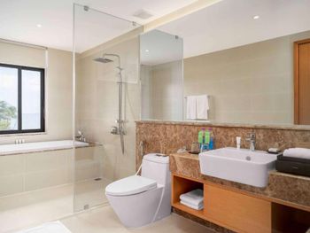 В распоряжении гостей Wyndham Garden Cam Ranh Resort — гостиная зона, кухня, обеденная зона и собственная ванная комната с душем, бесплатными туалетно-косметическими принадлежностями и феном. Также среди удобств есть кондиционер, телевизор с плоским экраном со спутниковыми каналами и сейф. Помимо собственной ванной комнаты с ванной и тапочками, в некоторых единицах размещения в Wyndham Garden Cam Ranh Resort из окон открывается вид на море. Гостям Wyndham Garden Cam Ranh Resort предоставляются постельное белье и полотенца.