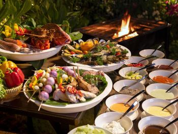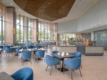 Ежедневно гостям предлагается завтрак «шведский стол», завтрак по меню или континентальный завтрак. При Wyndham Garden Cam Ranh Resort работает ресторан, где подают блюда корейской кухни, морепродукты и блюда вьетнамской кухни. Гости могут попросить приготовить вегетарианские, безлактозные и веганские блюда.