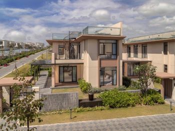 Вилы с очень качественной отделкой и превосходным дизайном интерьера. Качественная мебель, большие кровати с ортопедическими матрасами, чистое белоснежное постельное бельё. Индивидуальные санузлы в каждой спальне. Кондиционирование в каждом помещение. Бассейны на виле и центральный у пляже с тёплой водой. Полотенца и спасательные жилеты можно взять у бассейна бесплатно. Пляж и вода в море намного чище чем в Нячанге. Дно пологое, волны небольшие, что удобно для маленьких детей. В ресторане большой выбор местных фруктов, зелёных овощей, риса и блюд азиатской кухни.