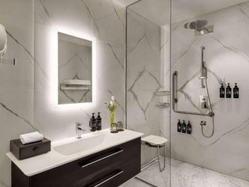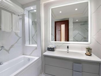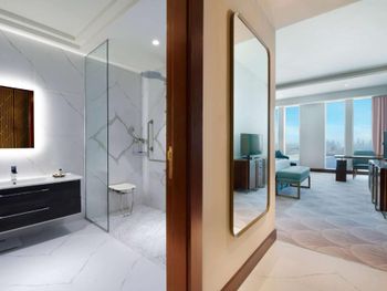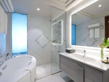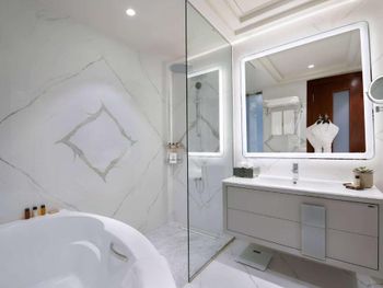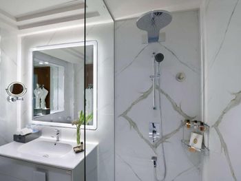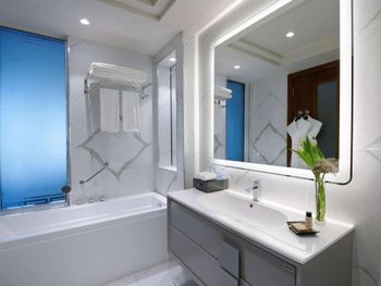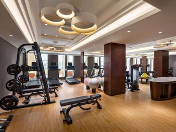 Гости отеля с 5 звездами Wyndham Grand Doha West Bay Beach могут воспользоваться сауной и гидромассажной ванной.