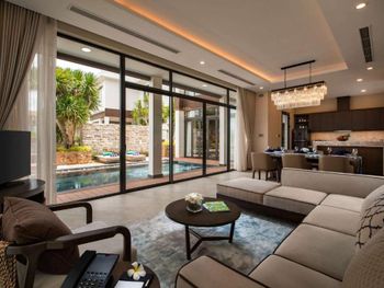 просто потрясающий современный дизайн, все идеально чисто, красиво, продумано для мелочей, есть халаты, сланцы, кухня, персональный бассейн, все утопает в цветах, везде работает интернет
