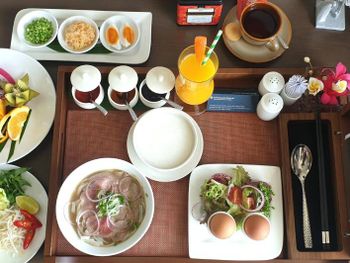 Гостям подают завтрак «шведский стол», завтрак по меню или континентальный завтрак. При Wyndham Grand KN Paradise Cam Ranh работает ресторан, где подают блюда американской кухни, блюда китайской кухни и блюда корейской кухни. Гости могут попросить приготовить вегетарианские, безлактозные и халяльные блюда.