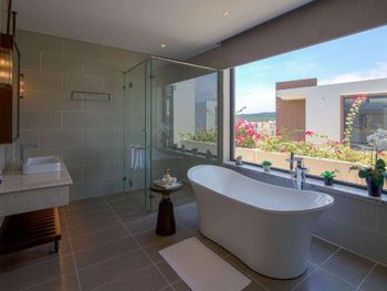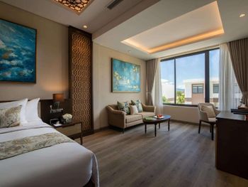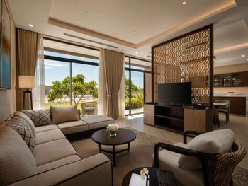 Очень хороший отель! Сейчас разложу все по полочкам! 1. Многие пишут, что плохое расположение. Действительно, отель расположен далеко от городов, но зато близко к аэропорту. Здесь важно понимать, какой вы планируете отдых. В отеле можно сделать апргрейд до all inclusive и тогда вам в целом не потребуется никуда выезжать. Также в отеле есть бесплатный трансфер в город! Если вы планируете отдыхать во Вьетнаме, то спланируйте отдых так, чтобы здесь вы были настроены только на пляжный отдых. Отсюда очень удобно улететь и вернуться в Дананг не тратя время на дорогу. НО ОТЕЛЬ СТОИТ ТОГО, чтобы сюда приехать ! 2. Пляж. Очень красивый пляж. Гораздо красивее , чем в Нячанге. Есть все необходимое. 3. Везде курсируют гольф кары, которые отвезут вас куда угодно. Поэтому расстояний не стоит бояться. 4. Шикарные виллы, все очень ухоженно. Невероятное красивая территория отеля, все в зелени. Очень красивые зоны отдыха и бассейны! 5. Отель еще достраивается. Сейчас нет шума стройки, но тут строят целый район. Когда все будет готово, это будет очень дорогой и красивый отель! Успейте посетить его пока людей тут не так много. Все фото соответствуют реальности. Очень красивые виллы! 6. Обслуживание. Очень добрые и улыбчивые люди. Быстро решают любую проблему! Если отдых, то в отеле такого уровня. Особенно если сможете забронировать выгодно. Мой совет: разбивайте ваше путешествие на колоритные места и на пляжный отдых. Тогда не получите разочарования. Этот отель для размеренного отдыха, игры в гольф и неспешных прогулок. За шумными рынками делайте бронь на несколько дней и едьте в Нячанг. Лично мы сделали так. Все разочарованные отзывы лишь потому, что люди сами не поняли, за каким отдыхом приехали. У нас была неделя в Нячанг и 4 дня тут. Так вот, пожалела, что не больше времени забронировали в этом отеле. Также отсюда было бы очень удобно улететь в Дананг, так как близко аэропорт.