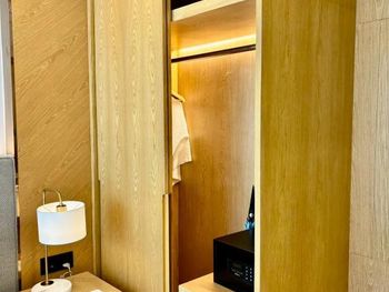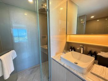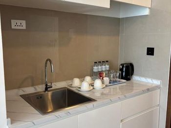 Не было никакой посуды и столовых принадлежностей кроме пары стаканов и кружек. При этом была мини кухня с раковиной, которой без посуды всё равно не воспользоваться. Из техники был только чайник и холодильник. Мы заселились около 23 часов и все рестораны на территории были закрыты, а купленную еду не на чем погреть. Плиты нет, микроволновки нет. Хорошо что 7/11 в пешей доступности.