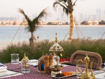 Ходили в бассейн и покупаться в персидском заливе 2 раза, сама вода без волн, видимо из-за того что внутри пальмы, песок не мягкий и не очень приятно ходить по нему босиком.