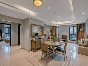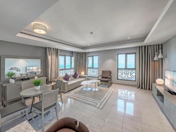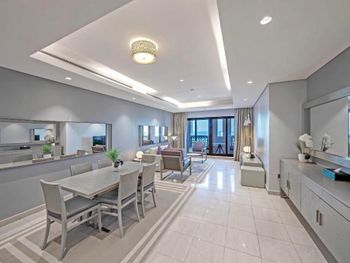 Отличное расположение на первой ветке пальмы с одной стороны Персидский залив, а с другой ухоженный внутренний пляж . На территории есть рестораны , с неплохой среднеземноморской кухней Хорошие завтраки, хороший кофе.