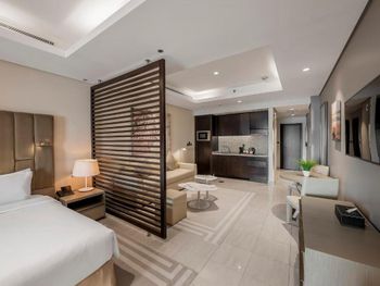 Мне понравился номер, балкон и кондиционер. Номер был большой, уютный, все что было необходимо имелось, можно сказать мини апартаменты, была стиральная и посудомоечная машинка. Все было продумано, начиная от розеток/выключателей до интерьера. Кондиционер не дул, можно настроить очень комфортную температуру. Также удивило наличие отдельной гардеробной. Персонал был вежлив и не надоедлив, что для меня является огромным плюсом. Был трансфер до моллов, мы воспользовались один раз. Был момент проблемы с водой на нашем этаже, выключили на пару часов из-за поломки, но тут же начали все устранять, такое бывает, за это я не снижаю балл))