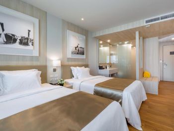 Если честно, каких-то особых плюсов у отеля нет. Все довольно стандартно - нормальных размеров номера, уборка хорошая, воду пополняли, в номере есть халаты, тапочки(не одноразовые), сланцы, гладильная доска, утюг, чайник, разнообразный набор в ванной (даже одноразовый станок и расческа). Из плюсов (по сравнению с похожими отелями), разве что, возможность обедать в любое время. А также возможность заказа из меню Seafood ресторана в баре у пляжа.