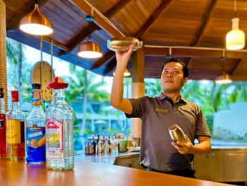 1) много бассейнов с разной глубиной, водная горка. 2) детям выдают ежедневно попкорн, есть кофе машина в фойе. 3) каждую неделю устраивают вечеринку с шампанским и закусками 4) приемлемые цены в ресторане 5) отель достаточно изолирован, вокруг мало людей, при этом до района с тайскими кафе идти минут 15. В принципе, все отель понравился, возможно, вернёмся еще