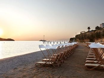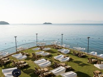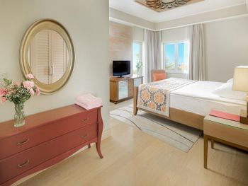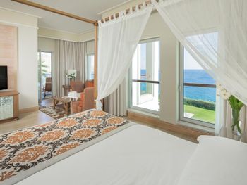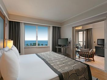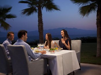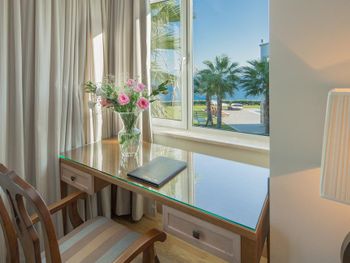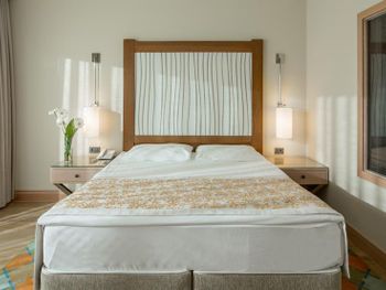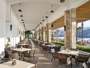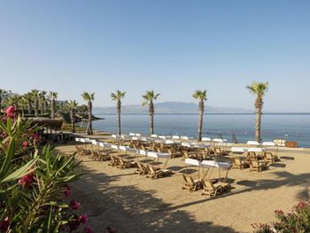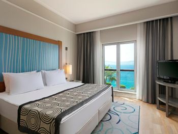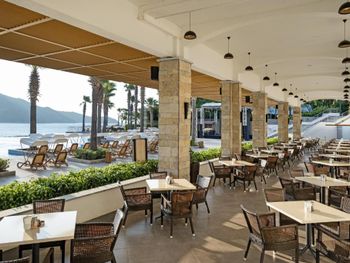 Отель, обычно, выбирается по фотографиям на интернет ресурсах, где можно оценить номер и территорию. И то, и другое полностью соответствует ожиданиям. В целом, отель соответствует своему высокому рейтингу на booking.com. При развернутой оценке следует учесть, что период нашего проживания 5-9 мая еще не сезон, не все корпуса отеля работали. 1) Территория - оценка 5. Отель занимает целый полуостров, со всех сторон окружен морем. Отдыхающие имеют широкий выбор отдыха на шезлонгах: у одного из двух бассейнов, на песчаном пляже, на травяных террасах, или на деревянных настилах у воды. К сожалению, южный помост был закрыт без особых причин, ощущение, что пока не сезон и не хватает персонала. Замечательный променанд по периметру полуострова. Спортивные площадки расположены в стороне, у вьезда в отель, поэтому никому не мешают. Из минуса - бассейны без подогрева, в мае еще бывает прохладно и сильные ветра (полуостров), это стоит учитывать. 2) Номера - оценка 5. Проживали в номере Sunset, номер просторный, с шикарным видом на море, гостинная и спальня, в номере 3 дивана. 3) Питание - 4+. Мне показалось, что не все возможности отеля были задействованы в начале мая. В целом, еды хватало, готовят вкусно, но, если придираться, и, учитывая высокий рейтинг отеля, есть ньюансы. Катастрофически мало фруктов, не было дыни, ананаса, арбузов, абрикосов, и даже клубники (в сезон, 100 лир за 1 кг на рынках!). На гриле, под заказ, готовят только 2 блюда, антрикоты (для меня мясо было слишком жестким) и котлетки. Почему не добавить рыбы, море продуктов, баранины. Справедливости ради стоит отметить, что отдельно имелись блюда, сделанные на гриле - овощи, курица. Удобна система увеличенного времени на завтрак, обед и ужин, меньше очереди и всегда есть места (был не сезон). Выбор десертов - особая фишка шеф повара, больше 60 видов! А вот на завтрак только один вид сока, апельсиновый.
