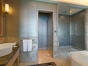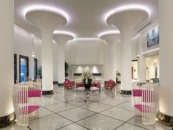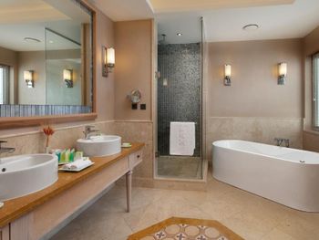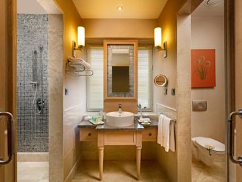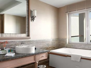 В этом огромном отеле с шикарной территорией ты будешь постоянно вынужден искать для себя место: как в общепите, где столы стоят вплотную к друг другу, так на основном пляже и тд. Это очень напрягает. Удивительно, как неправильно организованы основные зоны пребывания гостей, как расставлена мебель и гости вынуждены сталкиваться с дискомфортом. Номер в заявленное время к заезду готов не был, нас попросили погулять. Про состояние помещений и дизайн писать не буду - это видно по фото. Нам везде не хватало ОЧЕНЬ освещения: как в комнате с этим проблемы, так и в ресторане. Питание среднее, простые блюда, очереди. В другом, не столь раскрученном отеле в 20 км от этого у нас на столе постоянно были различные морепродукты, изысканные десерты, клубника, разница была существенной, прямо как из ресторана в столовую попали с жуткими очередями...И персонал, ребята в ресторане, очень уставшие, не общительные, как на тяжелой каторге. Менеджеры и представители кухни стоят у выкладки еды с неприветливым видом. В целом и общем, атмосфера там давит...