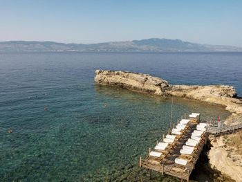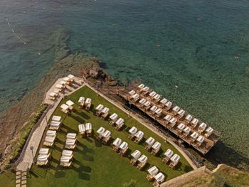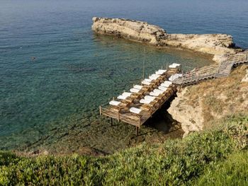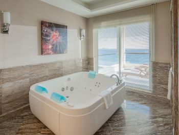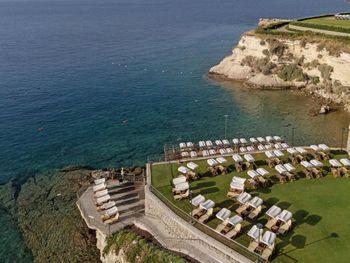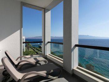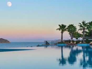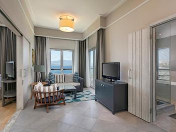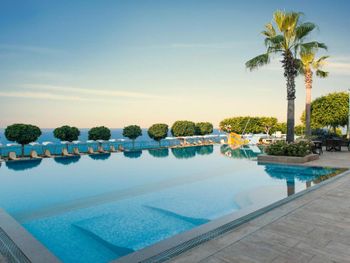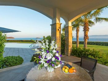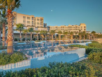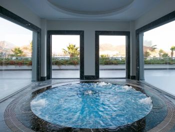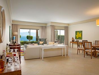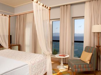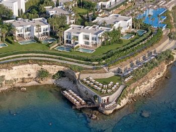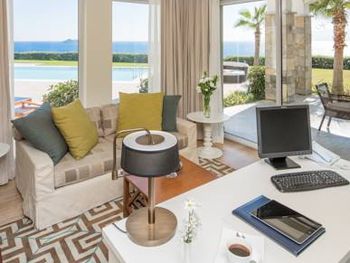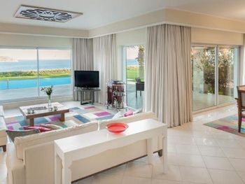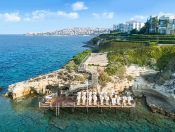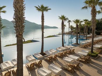 4) Спа центр, он никакой. Бассейн пахнет хлоркой, посетителей в нем за 4 дня не видели. За посещение спа и хамам требуется доплачивать 10 Евро с человека, мне это кажется странным в отеле с системой все включено и стоимостью проживания от 300 Евро за ночь. 5) Не хватило места, отметить все плюсы, продолжаю здесь отмечать плюсы. Чистейшая вода, так как полуостров, чего не всегда найдешь в отелях на побережье. 6) Есть своя парковка. 7) Есть услуги аква спорта. 8) Удобные лежаки с собственной системой регулировки козырька. 8) Очень красивый понорамный бассейн с восточной стороны. Детей с кругам не было, я бы их сюда не пускал. С запада больше отдыхают с детьми, там есть небооьшой детский бассейн. Отель как-бы соответствует категории только для взрослых, хотя такого ограничения нет, но это не тот отель куда стоит ехать с детьми, на мой взгляд.