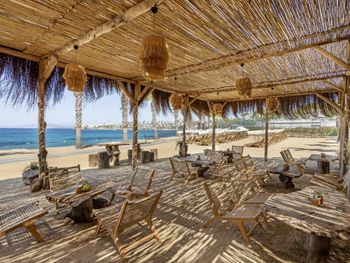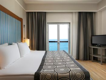 Сам отель требует ремонта и ухода. От неподстриженных кустов и пальм до общего вида территории. Все немного устарело (отель построен 2010г.) От телевизора 10 летней давности в номере, до ковров и мебели, которые давно не чистились и не менялась как в номерах, так и на территории. Пластиковые лежаки с грязными крышами (на фото отеля лежаки были другие, современные). На ресепшене тебя встречает едкий запах дешевых ароматизаторов (очень напоминает дедушкин парфюм). Алкоголь: Решили попробовать вино за ужином. Вкус спирта, дешевый алкоголь. Приборы и тарелки неоднократно попадаются грязные. Пляжа нет, есть зона около моря шириной 5 м, на которой стоят в один ряд лежаков. Лежаков у моря на всех конечно не хватает. Есть 2 пирса, один из них очень даже уютный, хотя туалета рядом с ним конечно нет... Еда - все включено. Вроде разнообразно, но есть особо нечего, не вкусно. Оценка питанию: 5 из 10 Вывод следующий: когда-то это был хороший отель...