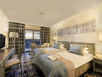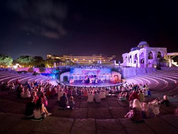 Если у вас вид на море в главном здании, вечером будете слышать все шоу программы. Если они будут возле бассейна, то тише, а если в амфитеатре, то довольно громко.