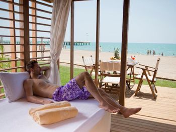 Курортный отель Xanadu - High Class с обслуживанием по системе «все включено» расположен рядом с морем, на прекрасном Средиземноморском побережье. К услугам гостей частный песчано-галечный пляж (протяженностью 415 метров) и большой пирс с шезлонгами. Гости этого 5-звездочного отеля с обслуживанием по системе «все включено» по достоинству оценят уникальную архитектуру, бассейны в старинном стиле, амфитеатр, многочисленные удобства в помещении и на открытом воздухе, а также детский клуб.