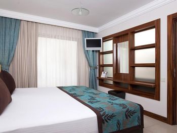 Ужастный Отель !!Два раза сняли с Карты стоимость проживания!Пришлось долго выяснять и ждать денег !Кроватку для ребёнка не приготовили !Хотя мы и по телефону и в письме об этом просили!В 2 часа в ночи,сонный ,усталый ребёнок ,которому годик,ждал час пока найдут кроватку !!!!В номере пыль и грязь под кроватями,при условии,что это начало сезона!!Есть в ресторане невозможно.Еда как в двухзвездочном отеле !!!Персонал хамовитый и равнодушный к просьбам!!!Не кому не рекомендую этот Отель,за те деньги которые они просят за номер !Уровень 2-з звёзд !!Вид из окон на турецкий квартал с бельём на балконах !