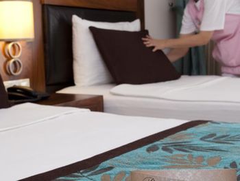 Не частая смена белья и полотенец. Исчезали принадлежности. УБОРКА НОМЕРА! Очень расстроил, скорее даже возмутил факт того, что не были возвращены вещи которые мы забыли в номере после check out. Дорогие духи забыли (в ванной) и обувь под кроватью. Вернулись за ними, но нам сказали, что «уборка номеров» ничего не передали и нам помочь не могут. Выяснилось, что после уборки они либо выбрасывают либо забирают себе. Вещи были дорогие! Получается, что оставили себе! Хотя у них есть комната потерянных вещей и наши вещи должны были сдать туда! Это возмутительно! Если отель позиционирует себя как 4* такое поведение персонала априори не допустимо!