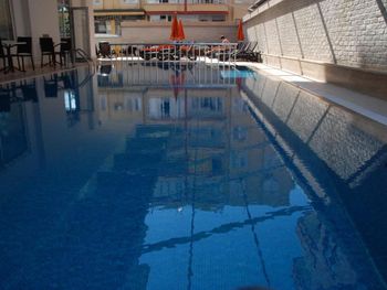 Гостиница в центре города, среди жилых домой. Выходишь на болкон номера и смотришь в окна жильцов дома напротив. Не комфортно. Бар возле бассейна ( он один и маленький) закрыт, персонал туда не заходит и приходилось самим за напитками идти через ресепшн и ресторан в другой бар.