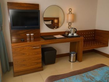 За небольшую доплату нам предложили номер категории выше. Понравилась чистота. У нас в номере убирали каждый день. Хорошие матрасы и есть подушечное "меню" где можно выбрать подушки. Очень отзывчивый персонал на ресепшен. Понравилось меню на гриле, было вкусно. Понравислось выступление музыкальной группы "Шаман".