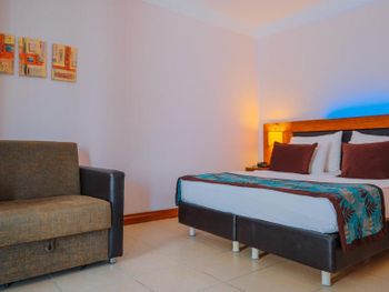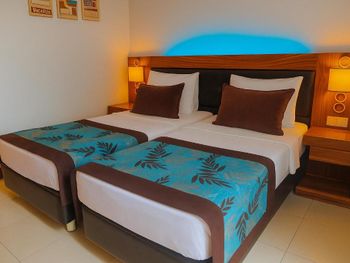 Во всех светлых номерах отеля Xperia Grand Bali установлены кровати с кожаными изголовьями и белым постельным бельем из дорогих тканей. Ассортимент бесплатного мини-бара обновляется ежедневно.