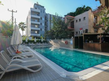 Отель находится на пляже Клеопатра. Идти минут 10. Нужно переходить дорогу. До подъемника в Крепость-минут 15. До порта минут 20. Мы приехали из Анталии на автобусе на автовокзал(отогар) ,взяли такси,доехали за 5 мин. За 30 лир. Но можно было дойти пешком минут за 15 по прямой дороге,которая идёт от стоянки такси. Гугл показывал какой-то сложный путь. Но на самом деле нужно идти по прямой линии. Как и писали хорошая,даже можно сказать-домашняя кухня. Много интересных блюд.но это на мой вкус. Русскоговорящий персонал на ресепшене. Прекрасный интернет на территории и в номере. Пляж номер 7. Лежаки платные. Но перед лежаками довольно широкая полоса песочного пляжа. Можно и без них. Полотенца отель не выдает. По пути купили тонкие полотенца и на них лежали. (1 евро) Номер хороший. Мягкая кровать. Уборка каждый день и с лебедями)))) Вода горячая и холодная прекрасный напор. Анимации нет. Отель тихий. Детских развлечений нет. Территории как таковой тоже. Но есть где погулять и чем заняться за территорией. Есть бассейн. Не купались. В ресторане столики располагаются как внутри здания,так и снаружи. Из экскурсий брали джип тур(25 евро) каньон и пещера.Очень советую. Было классно и весело. На день рождения супруга заказала комплимент от отеля. Принесли торт в виде сердечка и 2 коктейля. Вообщем что ожидала-то и получила. Всем Довольна. Спасибо всему персоналу.