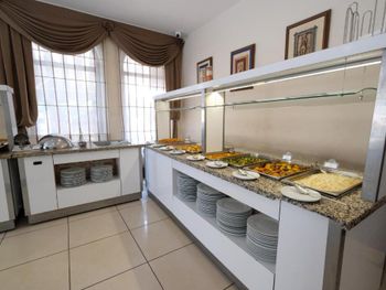 Унизительно большие очереди на завтрак, обед и особенно - ужин. Отель за оплату пускает в столовую любых желающих с улицы. При этом количество столов на такой поток не рассчитано. То есть мало того, что вы вынуждены стоять в очереди за едой, так еще потом вынуждены искать свободный стол с тарелкой еды. В связи с этим ходили кушать на 1 час позже расписания, что удобство назвать сложно. Также учитывайте, что до 8 утра, когда начнется завтрак, вы даже кофе из автомата не сможете выпить. Очень странно для тех, кто улетает ранним рейсом