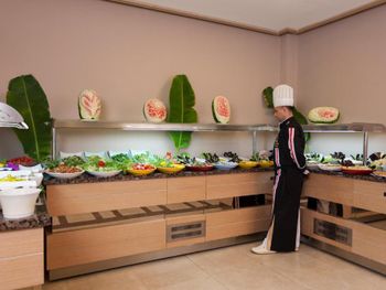 Еды просто НЕТ! На обед можно не ходить.Арбуз дешевый раз в неделю по праздникам, алкоголь отвратительный. Выдача полотенец по часам, причем в Рабочии часы полотенец никогда нет. Любая просьба становится проблемой. Нулевая шумоизоляция, в но крах с видом на море до 12 дискач слово на балконе. Ужаснейший отель! При ценнике 200 за неделю это издевательство! Больше ни ногой! Масса плохих отзывов от людей кто ехал от тур оператора, но их никто не слушает. Основном контингент -пенсионеры из Сербии и восточной Европы.