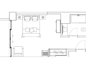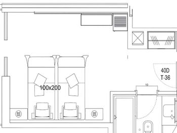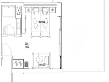 Нам дали маленький номер 11метров. И проходом 40см между кроватью и столом.