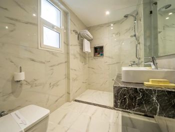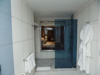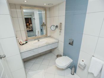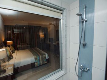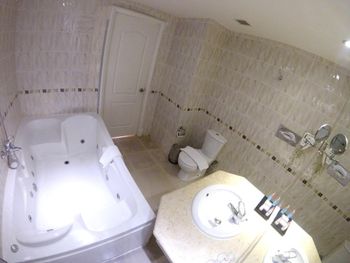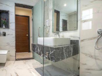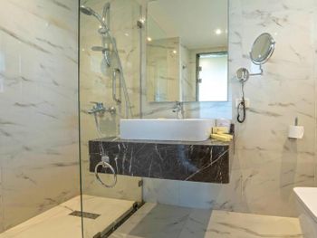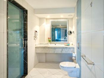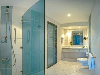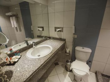 При заселении нас уверили, что селят в улучшенный номер. На входе в номер стало понятно, что номер обычный и отель не 5*. После первого душа нас переселили, т.к. в нашем номере оказались неисправности с сантехникой (как мы поняли, затопили номер снизу). Во втором номере тоже с сантехникой были проблемы - вода каким-то образом вытекала из под душа и приходилось регулярно протирать пол.