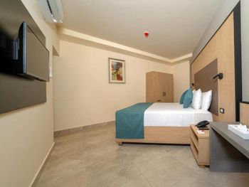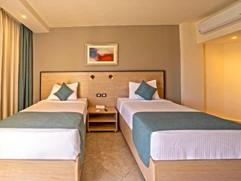 Грязный старый отель. В номере не работает холодильник, нет фена. Не было воды и полотенец!!! Пыльный, грязный и обшарпанный номер. Пришлось самим искать воду. На 2 взрослых и 2 детей после скандала выдали 2 больших полотенца и 2 маленьких для рук. Грязный бассейн со сколами плитки!!! Лежаки старые с провисшими сетками. Отель точно не 5*, а слабая тройка! Были в отеле одни сутки - больше там не выдержать. На ужин даже не пошли, а уехали в город.