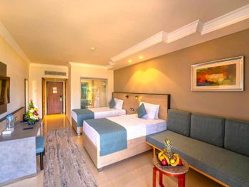 Большой семейный номер, чистые белые полотенца, отличные горки в аквапарке - за этим ехали. В принцыпе неплохая еда. Услужливый персонал. Чистая довольно большая территория. Хорошо организован трансфер на пляжи. Понравились вечерние программы - шоу.