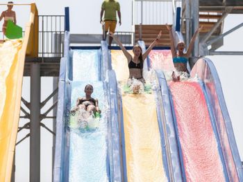 Хороший аквапарк, работает два раза в день: с 10.30 до 12 и с 14.00 до 16.30. Персонал весь на местах, за всеми горками следят. Когда большой наплыв людей может не хватать ковриков для катания, но горки отличные, можно кататься и без них. Отель был выбран из за аквапарка и оправдал ожидания.