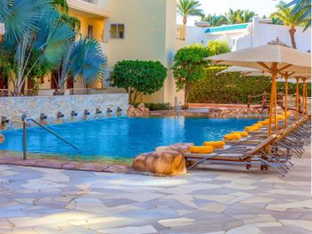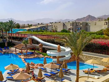 Отвратительный отель. Не рекомендую его для остановки в Шарм-Эль-Шейхе, тем более, если вы впервые на этом курорте, как были мы. Как только мы сошли с такси, нас спросили, бронировали ли мы здесь проживание, мы ответили, что нет, что собирались платить на месте. Нам сказали, что чемоданы нужно оставить на улице, т. е. даже не во дворе отеля. Затем, мы прошли на ресепшн и объяснили ситуацию, что для начала хотим наглядно выбрать номер и потом оплачивать этот номер по цене не bookinga, а той цене, которая сейчас в настоящее время. Нам показали номер. Мы вернулись на ресепшн и думали между собой, какой номер брать. На что главный администратор по имени Арун (это имя мы узнали не из бейджика, которого на нем не было, а от других лиц - это тоже ✔️что он скрывает своё имя) Он сказал нам, для чего вы это делаете, я, мол, трачу на вас сейчас время, а вы поедите в другой отель. Он постоянно поторапливает и ощущение что это вы должны ему денег!!!Это был шок. В смысле? Это беспардонность и наглость, с которой мы никогда и нигде ни в одной стране не встречались. WiFi 1,5$ в сутки.но это не так важно т к у нас была симка.На наш вопрос, почему интернет платный и в целом так плохо с ним в Египте, он нам заявляет, что, типо, а вы куда приехали, в какую страну. Хамло! Таким людям не место в сервисе. А ещё не давайте им свой телефон они могут за вас поставить оценку в букинге,поэтому у них такой высокий рейтинг(я не давал)!!!Когда я просил сравнить цену ,он попросил показать букинг и я показал и попросил сказать сколько стоит у них и он сделал вид что считает ,а потом выдаёт мне такую же стоимость как на букинге,совпадение?))Ему на рынке торговаться. По бару претензий нет, в ресторане еда скудная, временами безвкусная. И когда просишь принести третий стакан cola, при этом у тебя стоит ещё 2, официант говорит, что куда тебе, у тебя ещё стоит вон и пальцем показывает. И что это вообще было? Это называется «все включено»?!