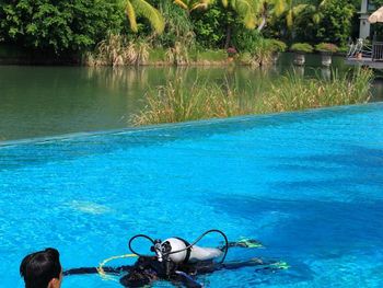 В спа-центре курортного отеля Yalong Bay Villas and Spa с пляжем и бассейнами гостей ждет эксклюзивный отдых. Гости могут заняться различными водными видами спорта и посетить большой бассейн в виде лагуны, окруженный тропическими пейзажами.