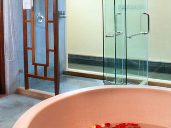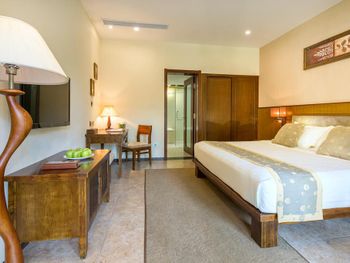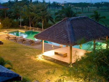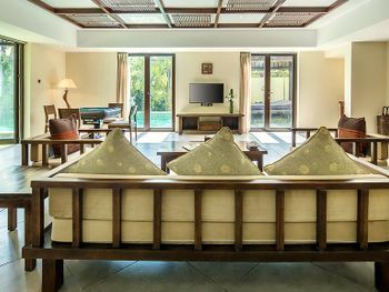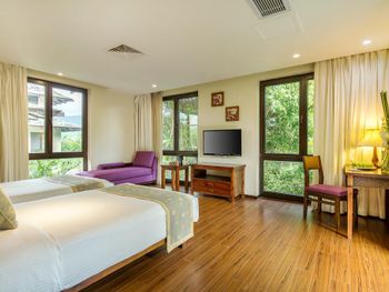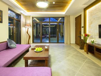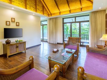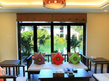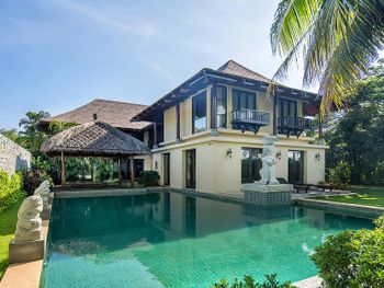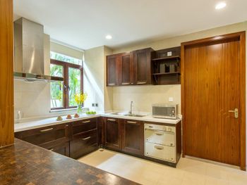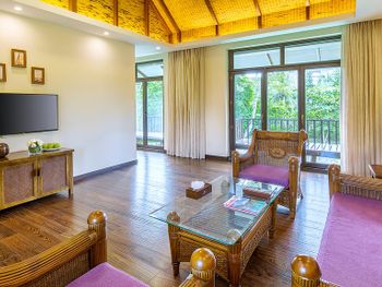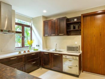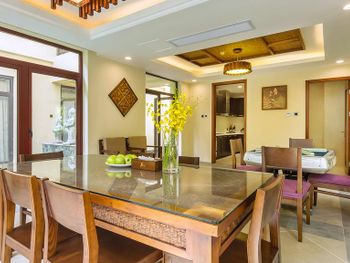 В отеле нет англоговорящего персонала, хотя многие надписи сделаны на английском, правда с ошибками, но в целом понятно. Отель не отвечает на сообщения через booking.com. На вилле, хотя есть кухня, на ней нет плиты (только СВЧ) и практически никакой посуды, кроме бокалов и чашек. Мебель несколько потертая и устаревшая, стиль аскетичный. В бассейне неудобная лестница, очень высоко находится нижняя ступенька. Бассейн окружен пальмами и деревьями, с которых падают сухие листья и семена, один раз попала ящерица. А в последний день пребывания в нем оказалась даже дохлая рыба. Видимо, ее бросил кто-то из персонала, так как рядом пруд и у берега закинут садок для ловли рыбы. Но самым большим нашим разочарованием был ужасный WiFi. Сотрудники на рецепции не смогли нам помочь установить его на ноутбук, но так как он нужен был для работы, пришлось настоять на вызове специалиста, но и после этого нельзя сказать, что он хорошо работал.
