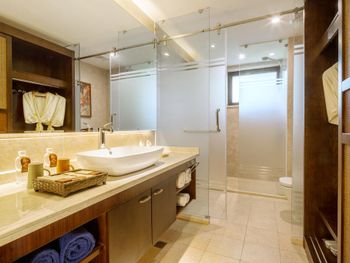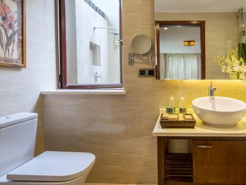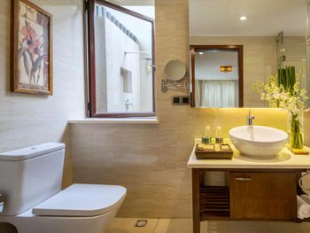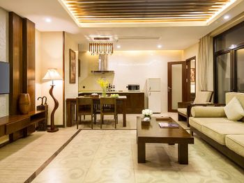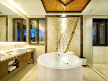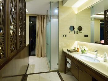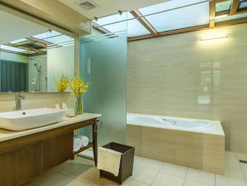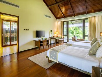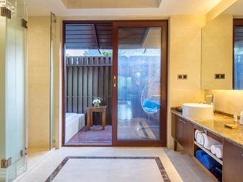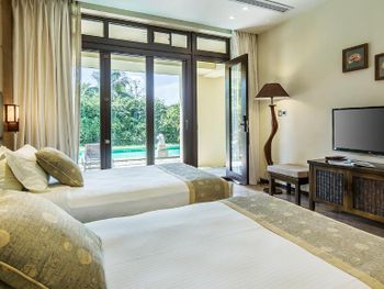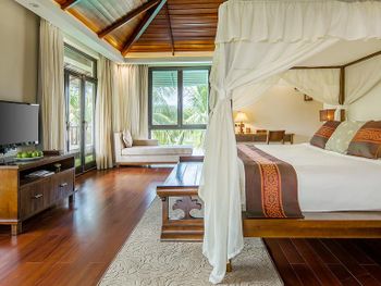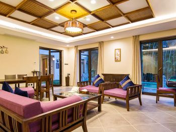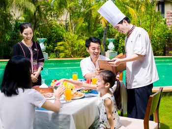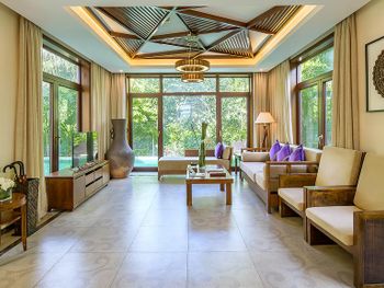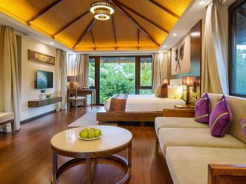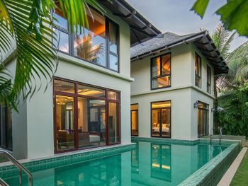 - Очень отзывчивый персонал, помогут и подскажут по любому вопросу; - Хорошая уборка номеров; - Разнообразный завтрак. Каждый день было что-то новое, не надоедало совсем. Китайская, европейская кухни; - По территории отеля и до пляжа ходит трансфер, приезжает очень быстро; - По факту это жизнь на вилле, достаточно умиротворённое место, был прямо перед номером мини-бассейн на 4 комнаты;