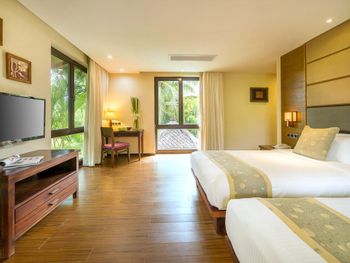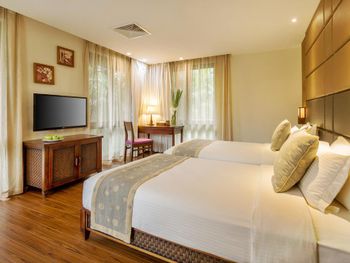 Очень зелено. Классная территория. Есть большой бассейн. Разливное пиво в баре. Нам очень понравилась наша вилла с бассейном. Все красиво очень. Убирались каждый день. Все чисто, все работало. Если приедем еще, то только на виллу.