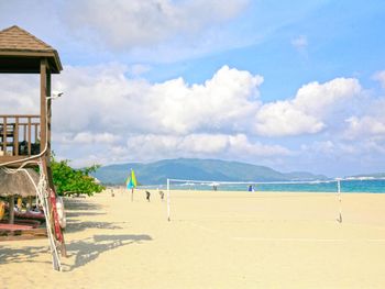 Занимали виллу с двумя спальнями (в доме были еще две закрытые спальни ), было тихо, даже в праздники никого особо не видели и не слышали. В нашем распоряжении находились еще кухня-столовая и гостиная. На вилле есть собственный бассейн, достаточно большой. Уборку в доме и чистку бассейна производили каждый день. По TV можно посмотреть CNN & HBO, есть еще пару каналов на англ. яз, есть канал и на русском, но у нас он завис и не показывал. Завтрак -буфет, много китайских блюд, овощей, были фрукты, соки, кофе, выпечка, даже сыр, ассортимент менялся каждый день. Море в пяти минутах ходьбы через дорогу, но всю неделю нашего пребывания плавать не разрешалось, были волны. В 5-7 минутах ходьбы по тенистой улице находится центр с ресторанами и небольшими супермаркетами, где кроме фруктов, воды, печенья и алкоголя по очень высоким ценам, ничего нет. Мы покупали в ресторанах еду и обедали на вилле. Несколько раз ужинали в ресторанах, есть выбор морепродуктов, можно их купить и там же повара и приготовят.