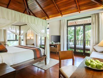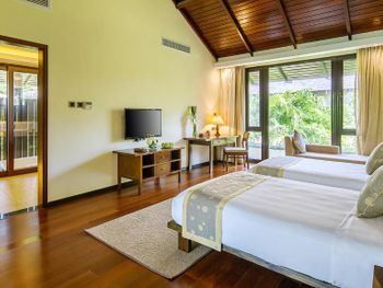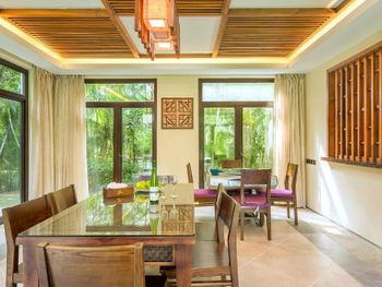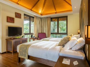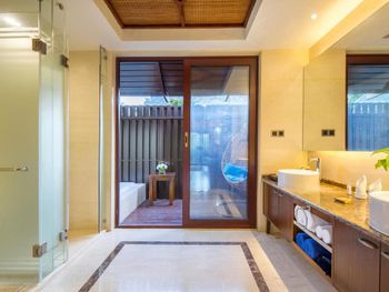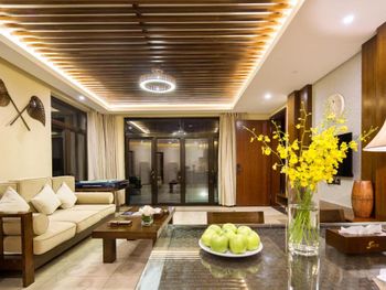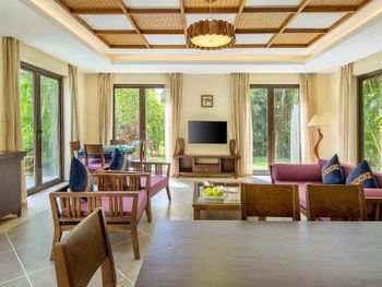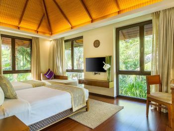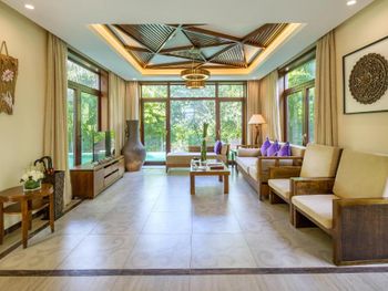 - Очень отзывчивый персонал, помогут и подскажут по любому вопросу; - Хорошая уборка номеров; - Разнообразный завтрак. Каждый день было что-то новое, не надоедало совсем. Китайская, европейская кухни; - По территории отеля и до пляжа ходит трансфер, приезжает очень быстро; - По факту это жизнь на вилле, достаточно умиротворённое место, был прямо перед номером мини-бассейн на 4 комнаты;