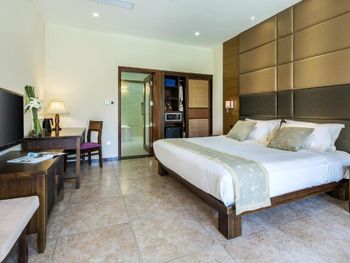 Бронировали виллу Романтика. Сама вилла не плохая с индивидуальным бассейном. Кровать и подушки очень не удобные. На пять звезд отель не дотягивает. Территория большая, зеленая. Завтраки адаптированы под российского массового туриста. Голодом не останется никто. Пляж через дорогу, но лежаков на такое количество проживающих не хватает. И улучшения не предвидится, за много лет ничего не изменилось. Вряд-ли приедем в этот отель еще раз. Для нас главное - комфорт. Думаю, многие, кто проживали здесь со мной не согласятся, но у каждого свои требования....