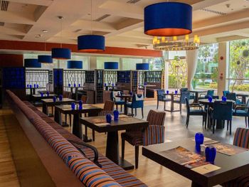 Гости могут заказать разнообразные блюда в эксклюзивных кафе и ресторанах курортного отеля, в том числе стейк-хаусе Blue Grill, индийском ресторане Rangoli, спорт-баре Y Bar, баре у бассейна Aquarius, ресторане Choices All Day Dining и лобби-лаундже Island Cafe.