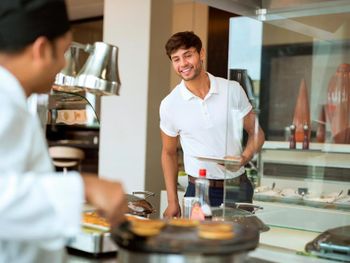Нам понравился отзывчивый персонал, вкусные завтраки с индийскими блюдами, тёплый бассейн.