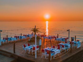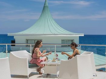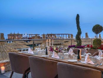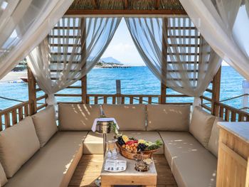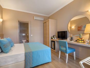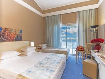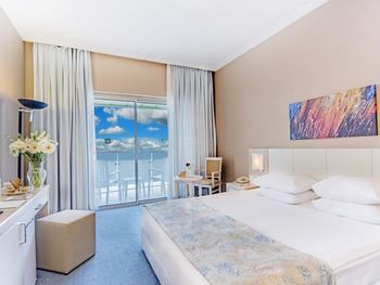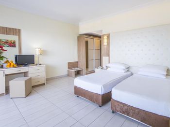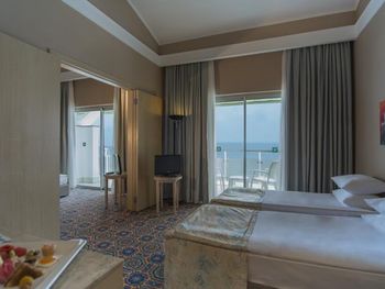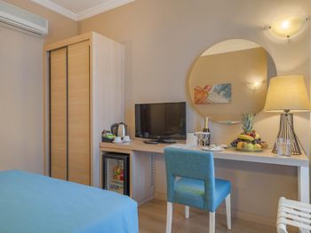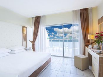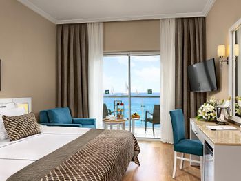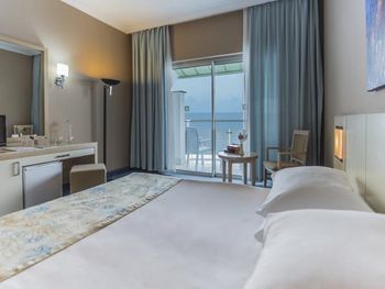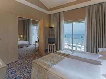 Если вы соберётесь бронировать номер с видом на море, то приготовьтесь к тому, что вы из номера будете слышать не шум волн, а огромную тарахтелку из кухни, которая работает до трёх часов ночи.... а ещё, если вы не любители кондиционеров, вы можете отгадать что конкретно в данную минуту готовят там...У нас было два номера... так вот второй номер... тоже с видом на море... выходил на то место, где, начиная с 9 часов вечера и до 12... гремела музыка.... непонятно для кого....(иногда там выплясывал один какой-нибудь старичок)...