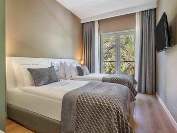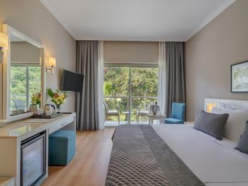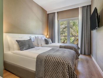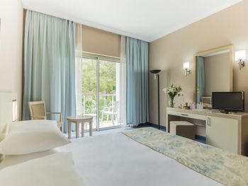 Полностью отремонтированные в апреле 2019 года номера оформлены в спокойных тонах. Большие окна обеспечивают хорошее естественное освещение. В каждом номере есть меблированный балкон с видом на Средиземное море или лес.