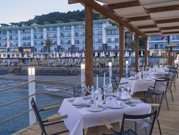 Нет звукоизоляции в номерах , даже при закрытых окнах, до 1.30 ночи громкая музыка, отлично слышно было и соседней , которым ночью не спалось , ;питание однообразное, плохо вымытая посуда в ресторане. В страховом случае, невозможно доктору попасть в отель, из за того, что в отеле есть свой врач, приём которого платный 100 евро), по страховке можно только выехать из отеля в ближайший пункт , который может быть и в 20 минутах езды, даже если вы с высокой температурой, врача от страховки к вам в отель не впустят(( в отеле есть Платные павильоны на пирсе Цена 60 евро в день, но обслуживание не соответствует тому, что вам предлагают... полотенца приходилось выпрашивать каждый день напоминать., чтобы из принесли в павильон, сейф и холодильник не работал через день...