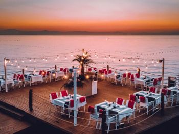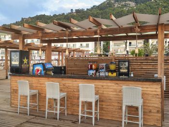 Весь день музыка очень громкая и агрессивная пьяная молодёжь, которая дорвалась до бесплатного алкоголя. Не хватает лежаков на пляже.